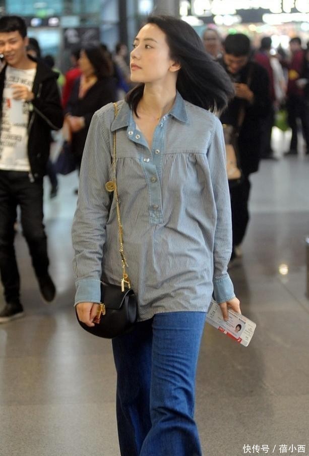 想不到高圆圆才是穿搭高手,休闲衬衫+牛仔裤,小肚腩都被藏起来