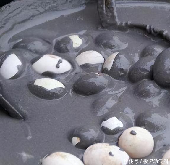 这本古书中记载了一种叫作“混沌子”的做法:“取燃炭灰一斗,石灰一升,盐水调人,锅烹一沸,俟温,苴于卵上,五七日,黄白混为一处”,“混沌子” 其实就是最早的皮蛋。
