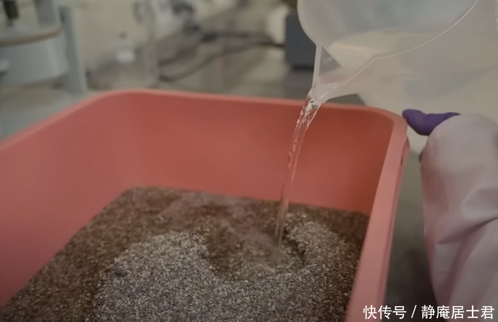 科学家将这些颗粒加入清水,进行反复冲洗,去除当中可能含有的杂质,否则生产出的塑料袋颜色并不美观。
