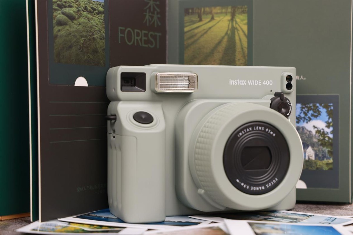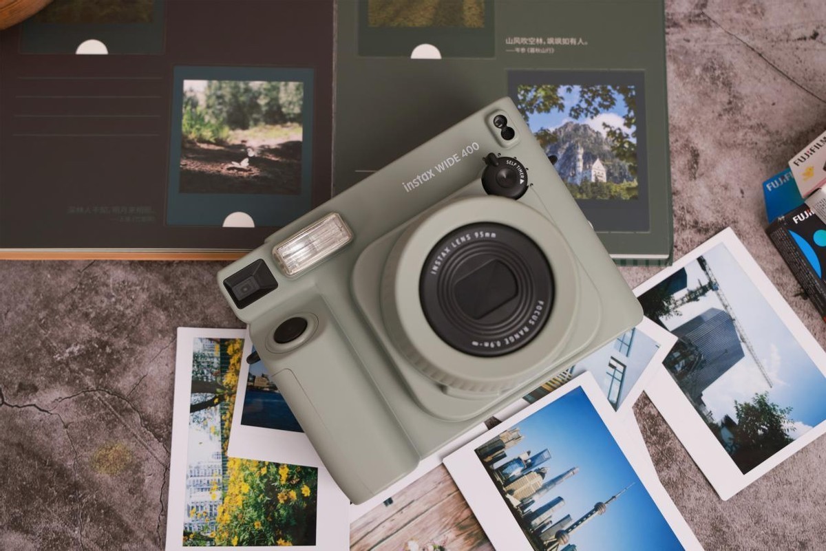 相较于前代产品WIDE 300,instax WIDE 400在多个方面实现了显著进步。外观设计上,instax WIDE 400更加流线型,握持手感更佳。采用了时尚的原野绿,更加符合现代审美。功能特性上,新增了定时自拍功能、取消了手动曝光设置改为自动曝光模式,简化了操作流程,让拍摄变得轻松简单。