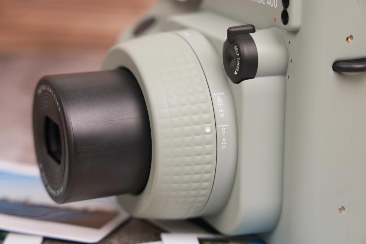 instax WIDE 400采用了旋转镜头开机的方式,镜头部分是可伸缩设计,关机时可保持机身紧凑,使用时则能按需调节镜头长度以确保不同焦段的成像质量。这一设计有效避免了误触开机的问题,还使得相机更加便于携带。你可以轻松地将它放入背包或挂在脖子上,随时随地记录生活中的美好瞬间。此外,镜头周围设有模式切换拨盘,用户可以根据拍摄需求轻松调整。