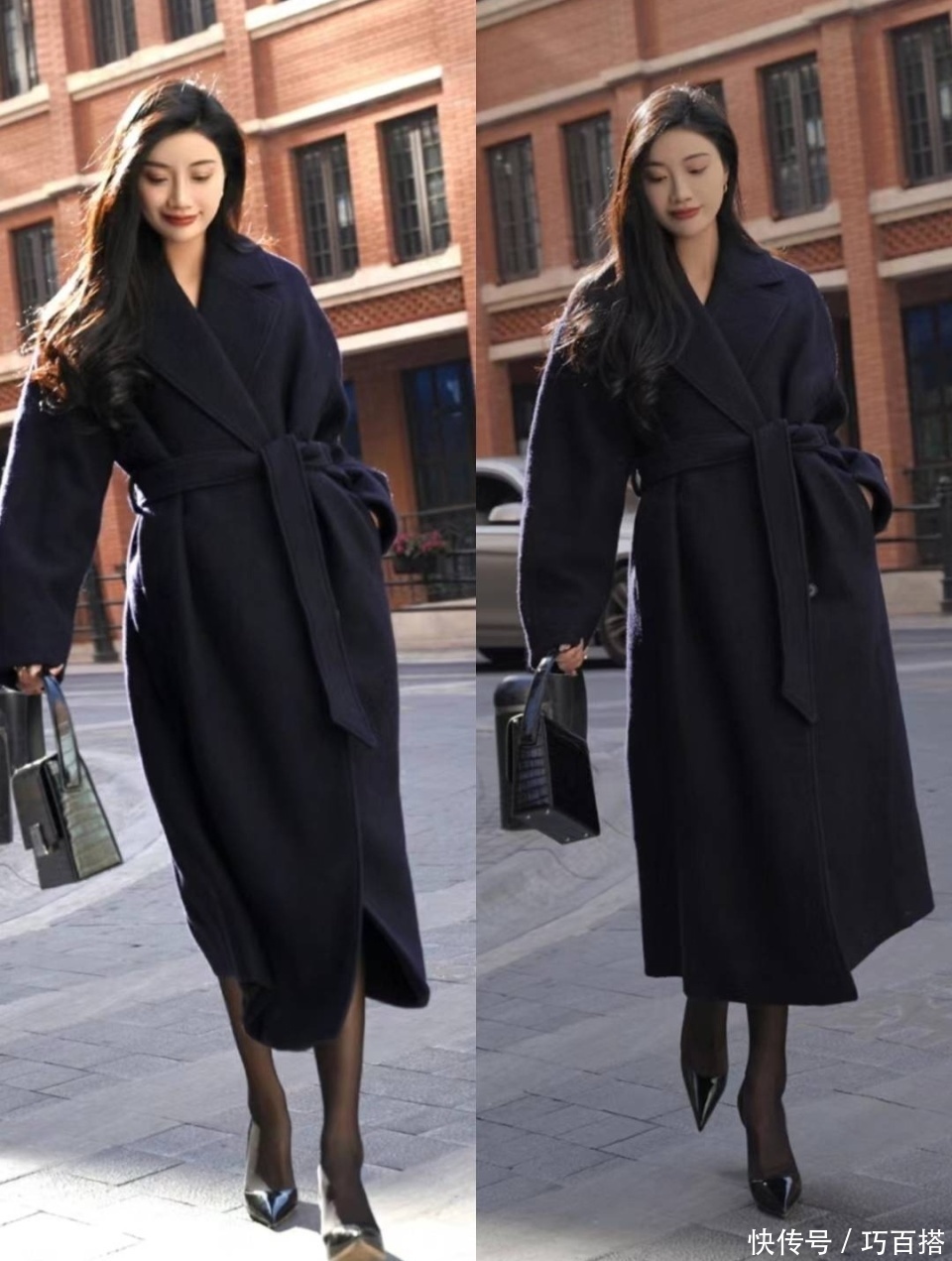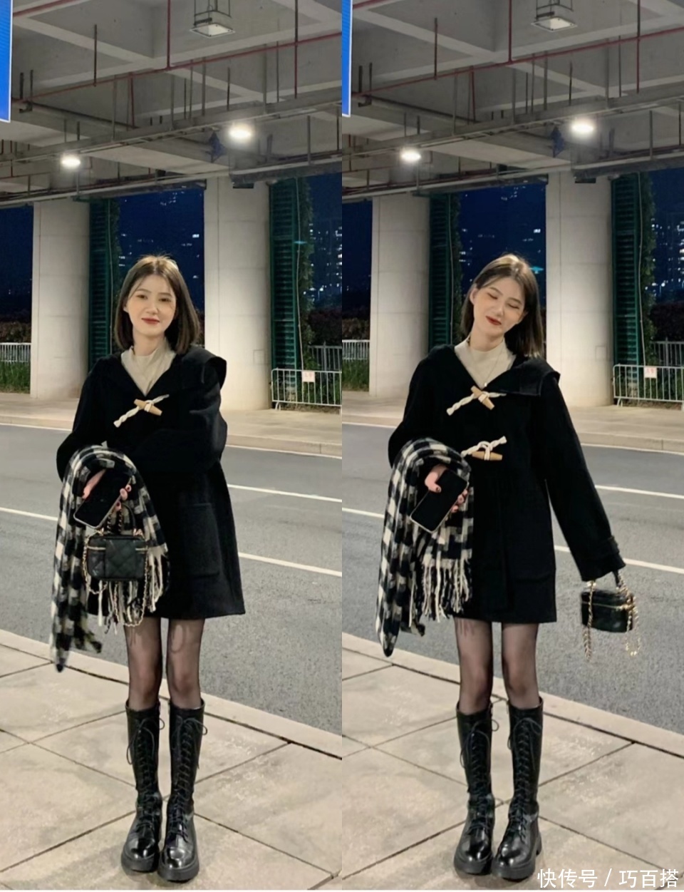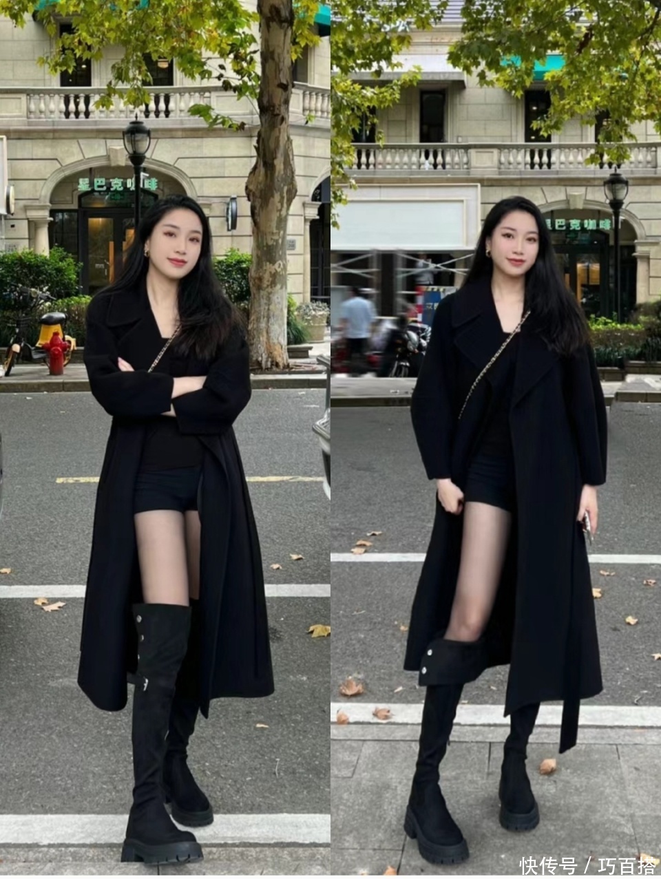 前种上镜效果更好看,但现实中容易给人一种弱不禁风的感觉,尤其是在加厚大衣的衬托下,黑丝和长靴看上去会非常没有支撑力。