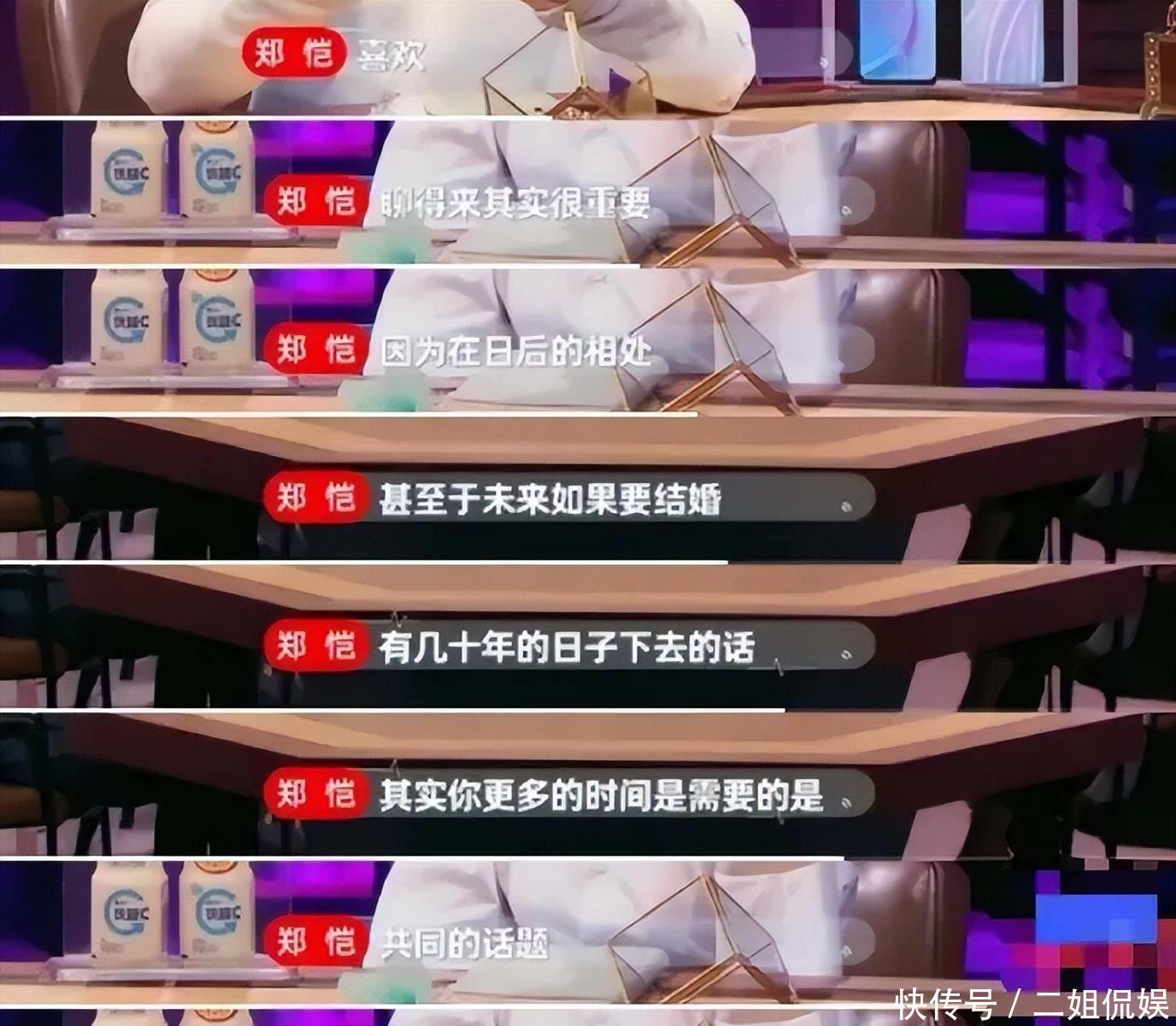 在一期节目中,郑恺表示,结婚是对两个人性格的考验,在生活中合得来的性格,相处的舒适度才是最重要的。