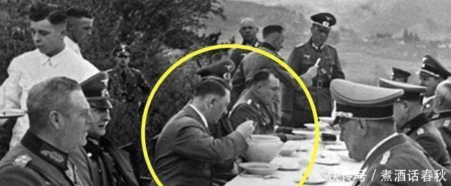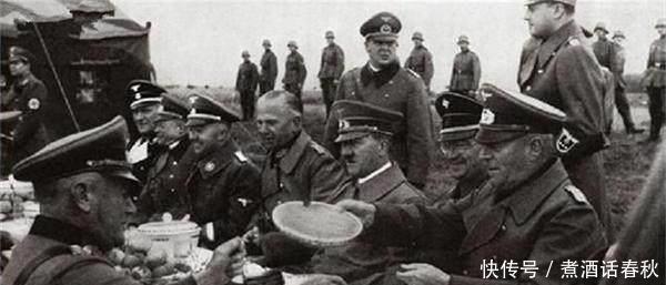 希特勒和将军们一起吃饭一直表情严肃的坐在中间!